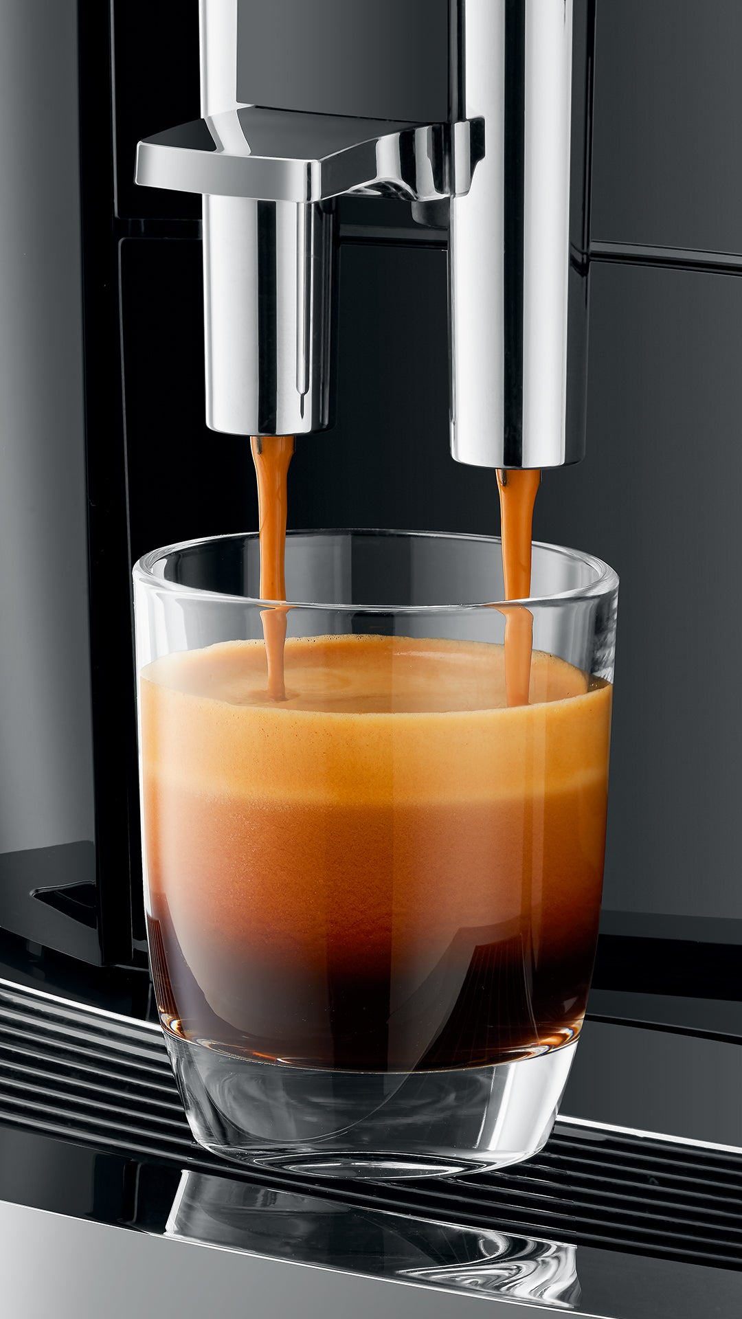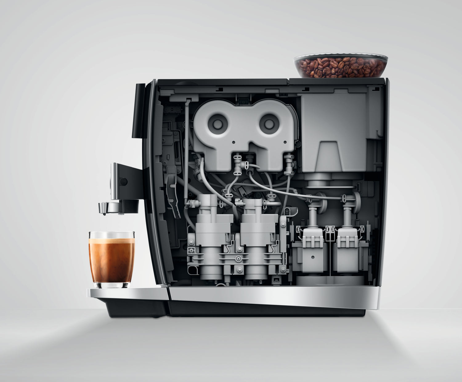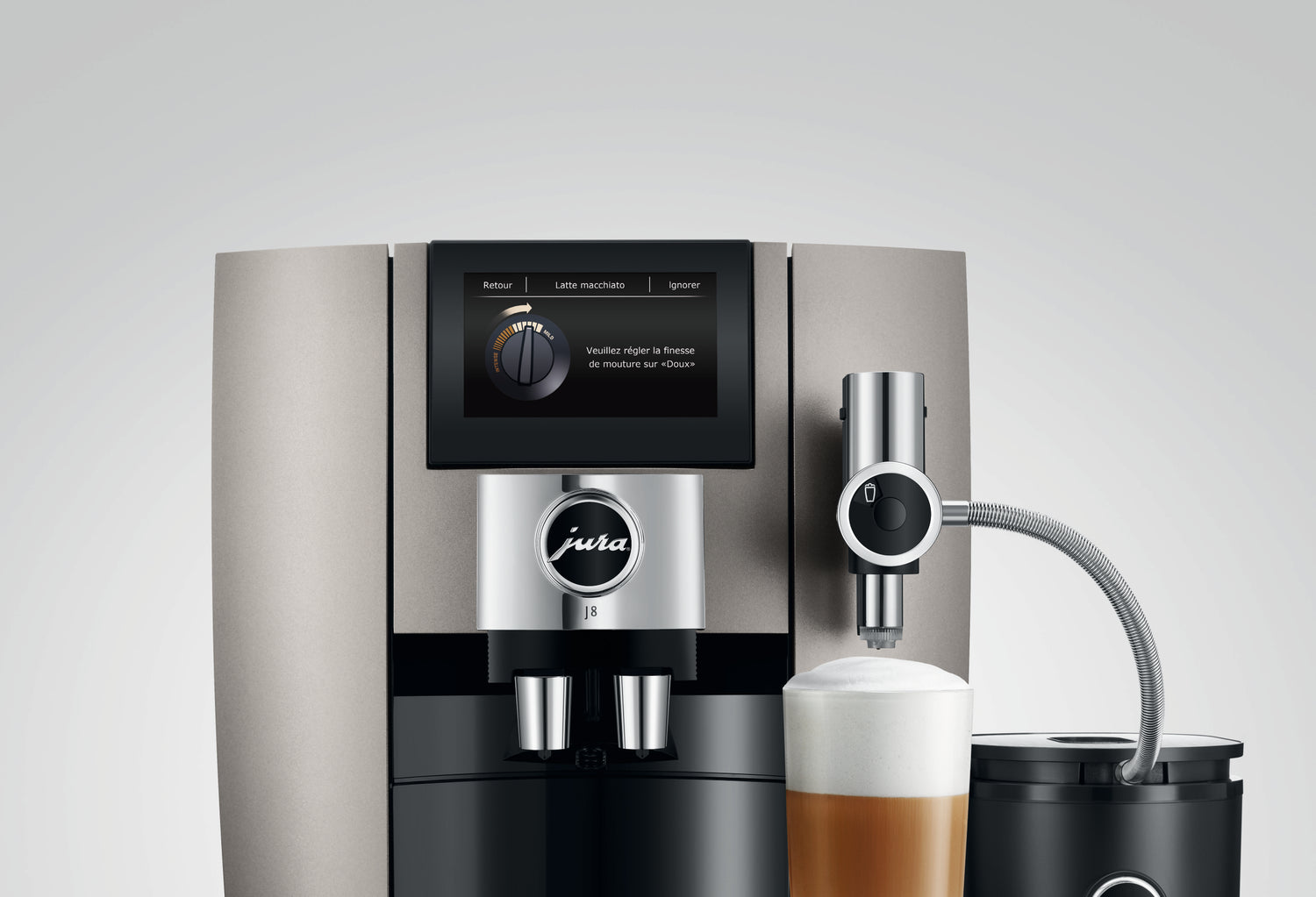 Technische Innovationen und vollendetes Design prägen die neue J-Linie. Die Sweet-Foam-Funktion aromatisiert den Milchschaum mit Sirup – beispielsweise für einen Sweet Latte. Das Mahlwerk P.A.G.2+und der 3D-Brühprozess garantieren maximalen Geschmack. Und für eine noch einfachere Bedienung passt das Coffee Eye die Spezialitätenauswahl der Tassenplatzierung an.